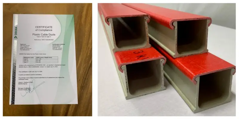 Met dit certificaat, uitgegeven door DEKRA Rail, voldoen wij aan de SPC-norm van ProRail (SPC00305 V001). Dankzij dit certificaat kunnen wij voor alle (aankomende) spoorprojecten onze Kunststof Kabelgoten type 9 (60x125mm), type 10 (80x80mm) en type 11 (50x50mm) leveren.